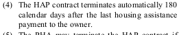 (4) The HAP contract terminates automatically 180 calendar days after the last housing assistance payment to the owner.