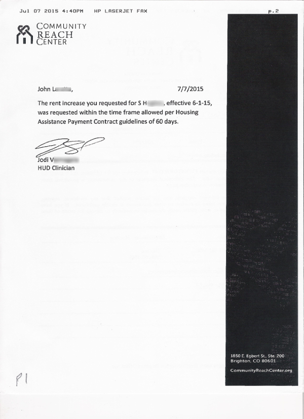 The rent increase you requested for Scott H -, effective 6-1-15, was requested within the time frame allowed per Housing Assistance Payment Contract guidelines of 60 days.